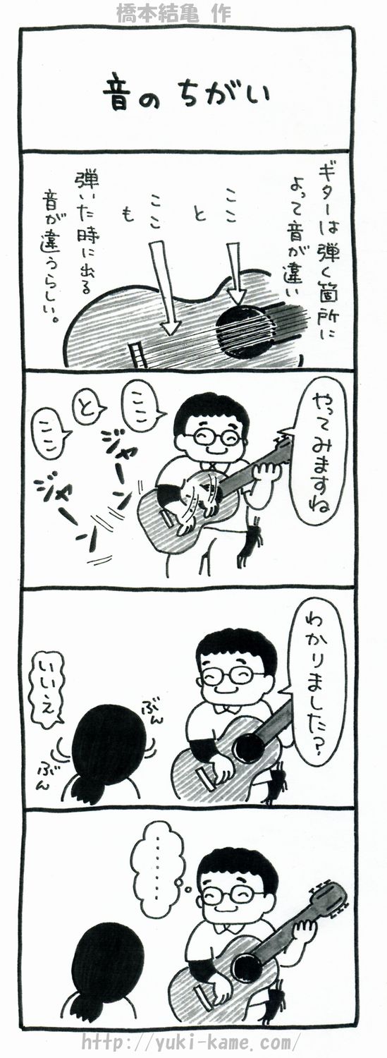 クラッシックギターは多彩な音色を持っている楽器です。右手のタッチの違い(爪の当て方・強弱・弾き方等)や、漫画の様に弦を弾く場所をかえる事によって