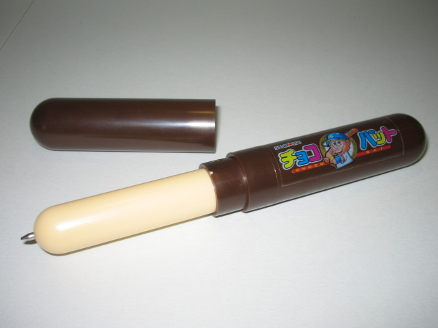 チョコバットを模したボールペンなので、当然コロコロ転がります。