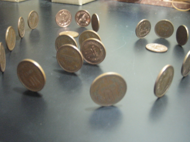 一応500円・100円も試しましたが、10円玉は100円玉より立ちやすく、500円玉より立ちにくい。